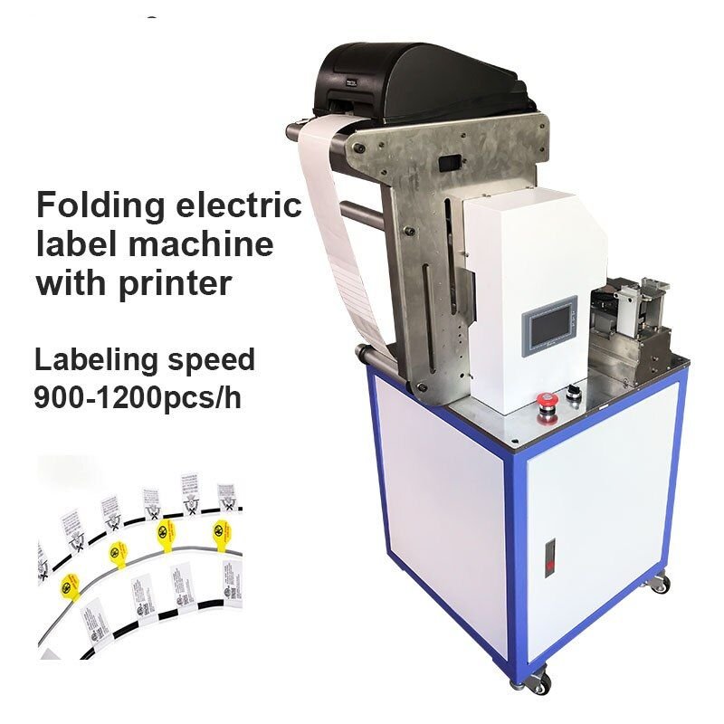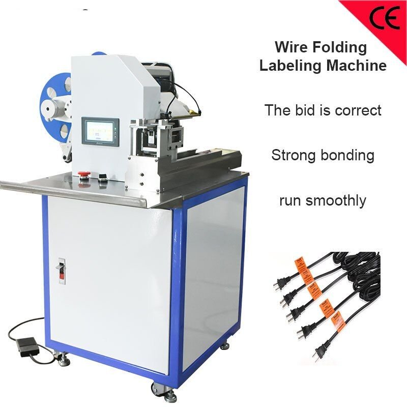 Wire folding labeling machine with printer adhesive sticker folding machine electric wire USB cable power cord labeling equipment